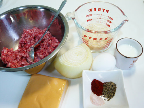牛絞肉200g、豬絞肉100g、洋蔥半顆、雞蛋1顆、麵包粉1/2杯、牛奶40ml、鹽1/4匙、