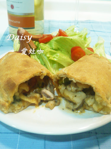 9. 將麵皮對折成餃子狀,放入已預熱200度的烤箱中烘烤25分至表面金黃