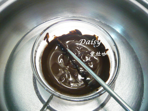 1. 無鹽奶油+巧克力塊隔水加熱溶化備用