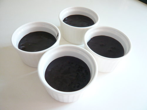5. 將巧克力麵糊倒入陶瓷模中、放入冰箱冷藏20分。