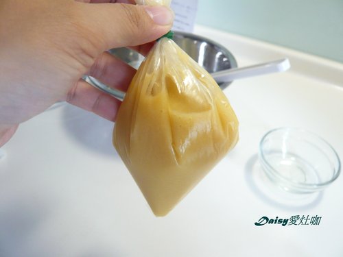 7 、 將麵糊裝進塑膠袋中(因為我沒擠花袋)放置冰箱冷藏3小時