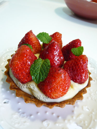 酥脆的餅皮配上冰冰涼涼充滿奶香的卡士達醬,加上甜美多汁的草莓,這絕妙的好滋味誰能抵擋的了這種誘惑呢~