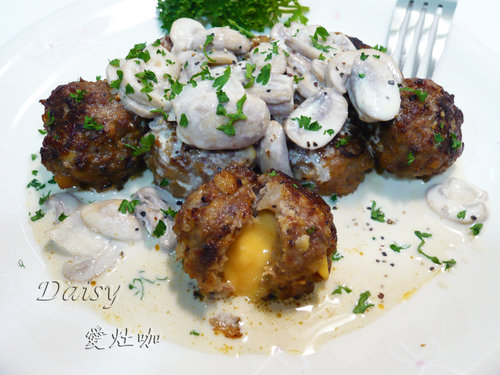 爆漿起司牛肉丸佐奶油蘑菇醬
