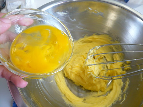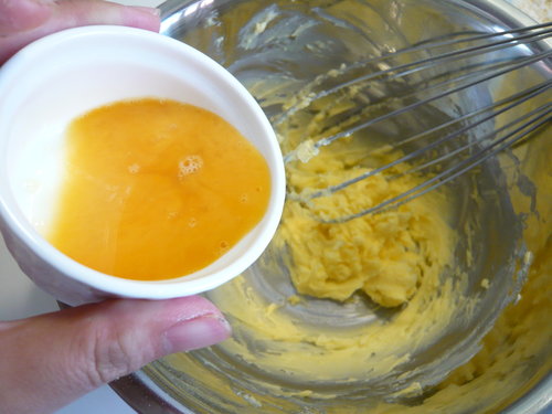 3. 蛋液分4~5次慢慢加入攪打均勻
