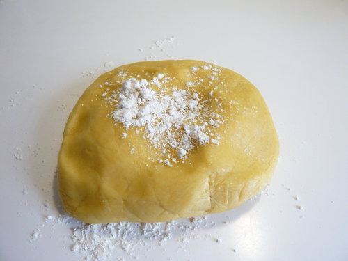 6. 在麵團上灑上少許麵粉,避免沾黏