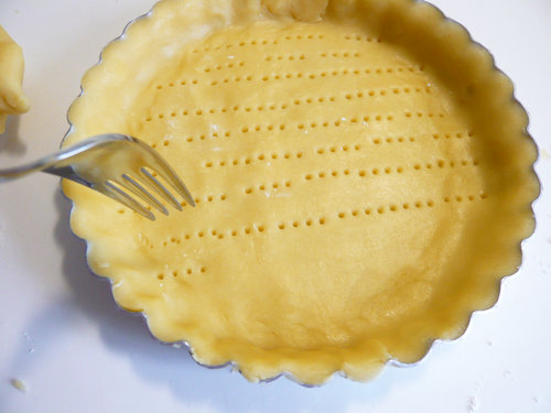 7. 將麵團擀成圓形鋪在派盤上,將多餘的派皮去除