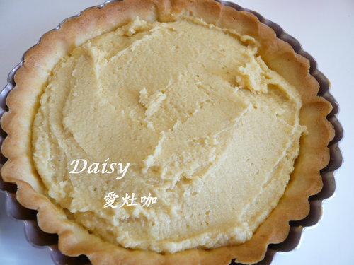 5.將杏仁奶油餡填入烤好放涼的塔皮內。放入已預熱180度烘烤15分