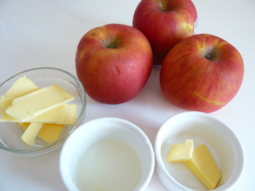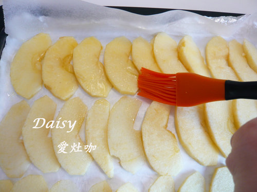 4. 將另外2顆蘋果切長片狀,刷上少許奶油